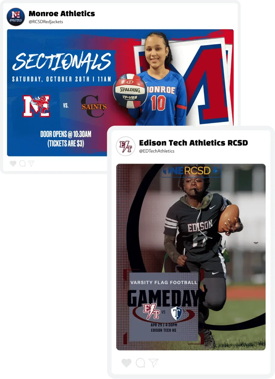 Athletic departments within the Rochester City district use Gipper to promote games & events on their respective social accounts. That way, community members always know when, where, and how to show up and support.
